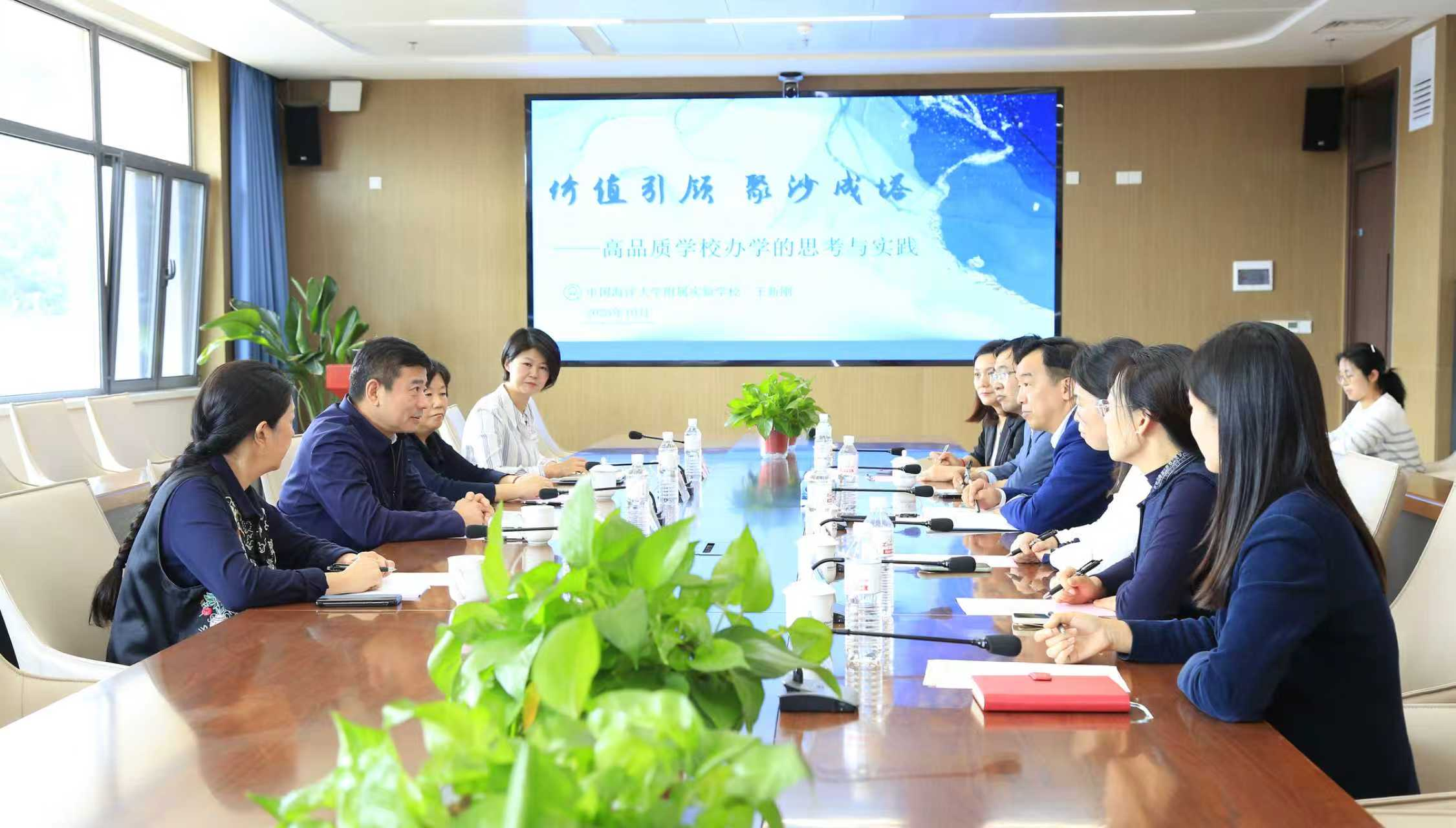 10月14日,学校党委书记李明到中国海洋大学附属实验学校调研。